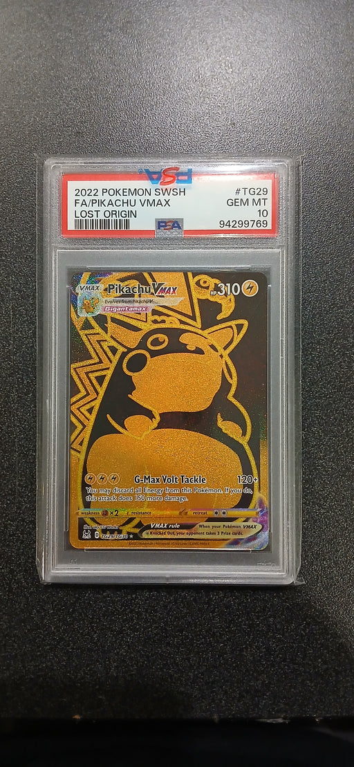 • Pokemon: PSA 10 Full Art Lost Origin Pikachu VMAX