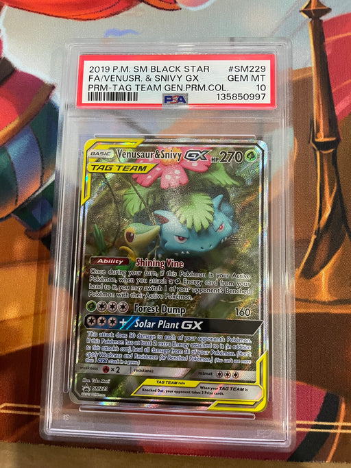 • Pokemon: PSA 10 Venusaur & Snivy GX FA SM229